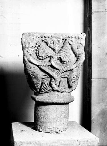 POP | Plateforme ouverte du patrimoineChapiteau roman orné de deux têtes et d'entrelacs