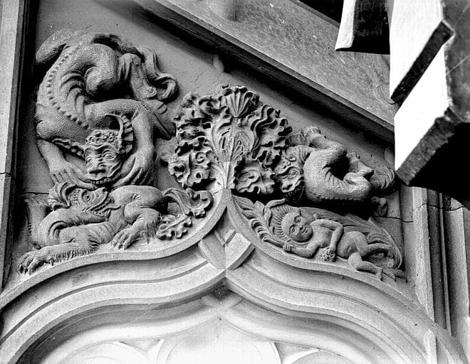 Tour nord, bas-relief d'un dessus de porte : dragons