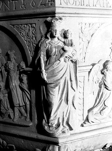 POP | Plateforme ouverte du patrimoineDétail du baptistère : statue de la Vierge à l'Enfant