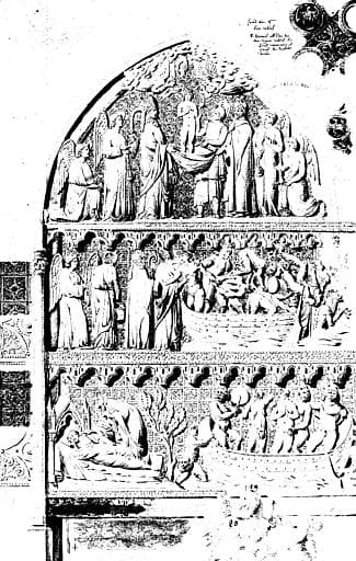 Tombeau de Dagobert : dorsal à registre sculpté