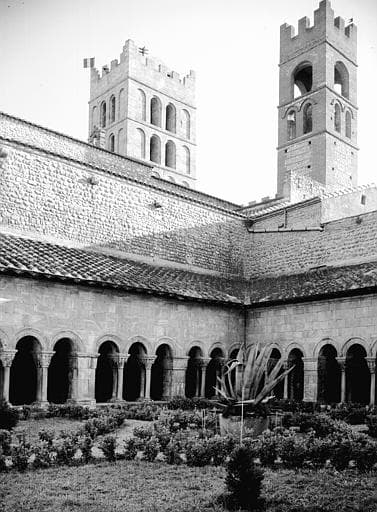 Clochers et vue du cloître, angle sud-ouest