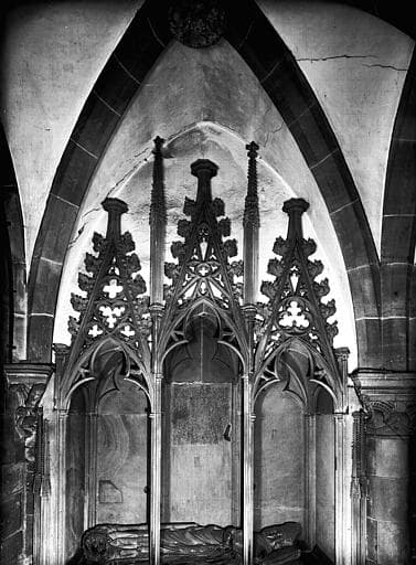 POP | Plateforme ouverte du patrimoineChapelle Saint-Jean-Baptiste, tombeau de Conrad de Lichtenberg, mort en 1299, détail de l'enfeu, partie supérieure