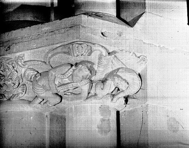 Croisillon nord, portail roman, chapiteaux formant frise, à senestre