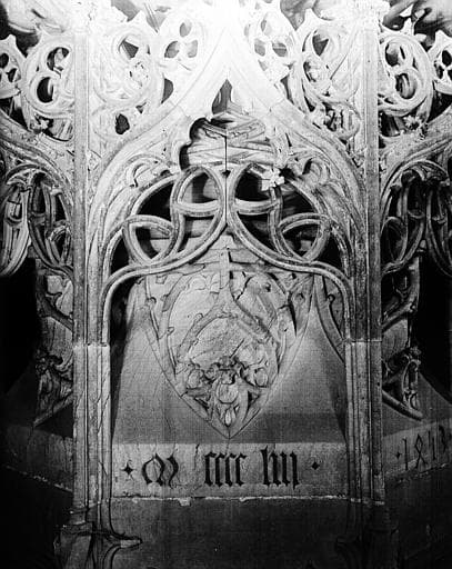 Croisillon nord, baptistère, en pierre, détail de la partie inférieure