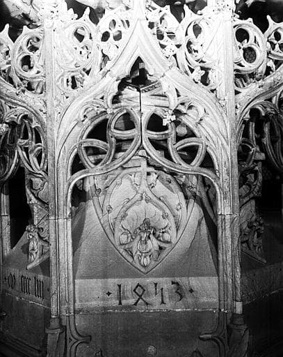 Croisillon nord, baptistère, en pierre, détail de la partie inférieure