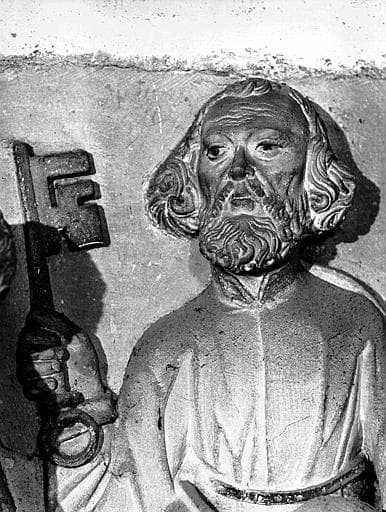 POP | Plateforme ouverte du patrimoineChapelle Saint-André, retable en pierre sculptée avec donateurs Jérome et Melchior de Barby morts en 1521, détail, saint Pierre
