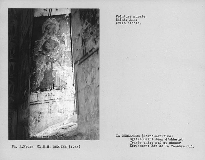 Travée entre nef et choeur, peinture murale de l'ébrasement est de la fenêtre du mur sud : Sainte-Anne