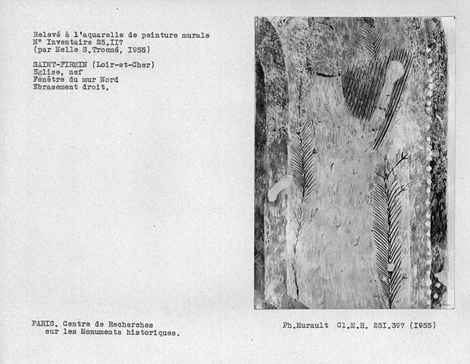 Relevé de peinture murale de l'ébrasement droit de fenêtre du mur nord de la nef