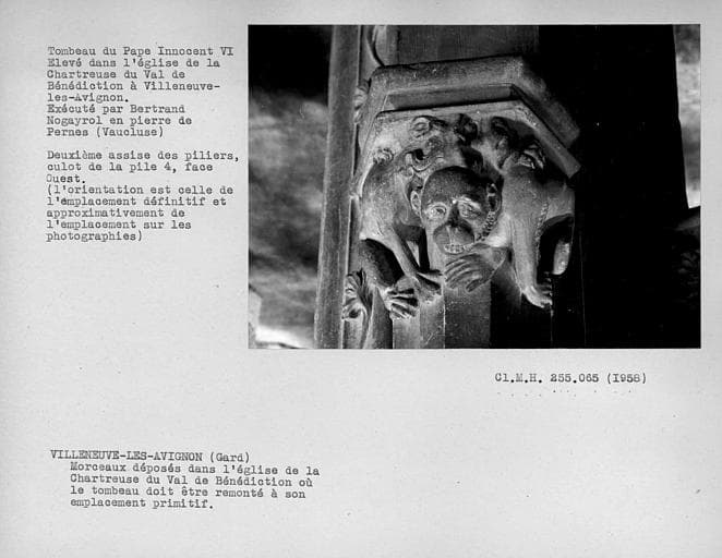 Eglise : tombeau du Pape Innocent VI, en cours de transfert, deuxième assise des piliers, face ouest du culot de la pile 4