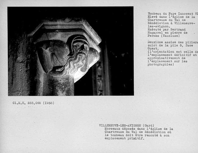 Eglise : tombeau du Pape Innocent VI, en cours de transfert, deuxième assise des piliers, face ouest du culot de la pile 5