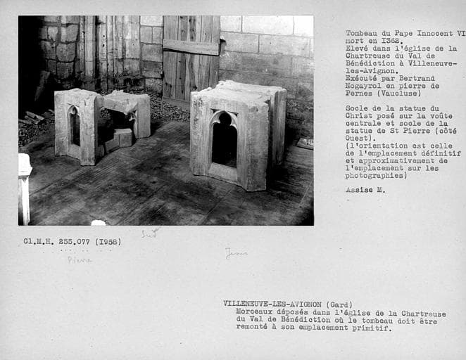 POP | Plateforme ouverte du patrimoineEglise : tombeau du Pape Innocent VI, en cours de transfert, socle de la statue du Christ posé sur la voûte centrale, et celui de Saint-Pierre côté ouest
