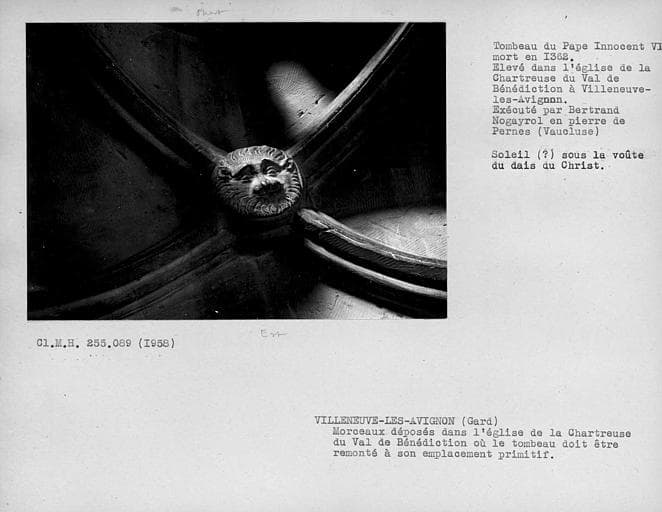 POP | Plateforme ouverte du patrimoineEglise : tombeau du Pape Innocent VI, en cours de transfert, tête de lion sous la voûte du dais de Saint-Paul