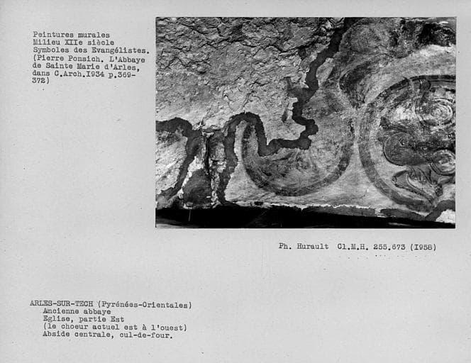 POP | Plateforme ouverte du patrimoineCul-de-four de peintures murales de l'abside à l'est de l'ancienne tribune : symbole de Saint-Marc et d'un autre évangéliste