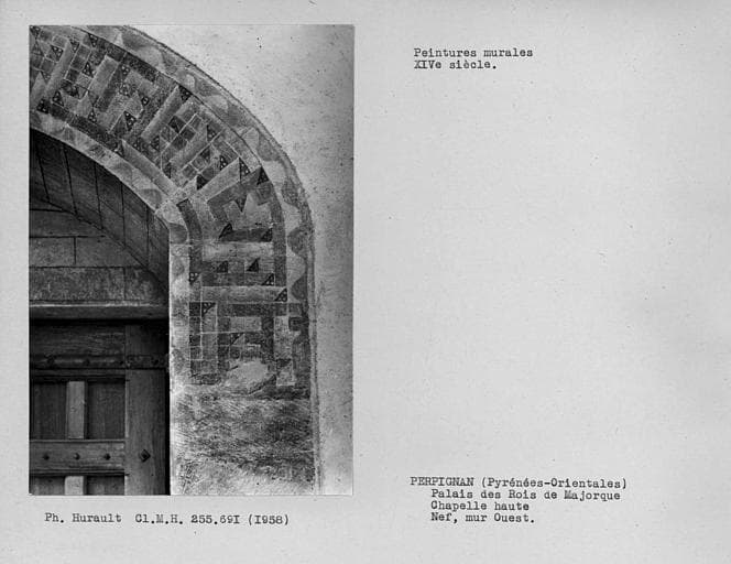 POP | Plateforme ouverte du patrimoinePeinture murale du mur ouest de la chapelle haute, détail de la grecque encadrant la porte d'entrée du mur ouest de la chapelle haute