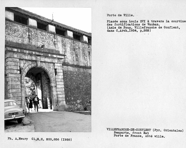 Remparts, front est. Côté extérieur de la Porte de France, placée sous Louis XVI à travers la courtine des fortifications de Vauban