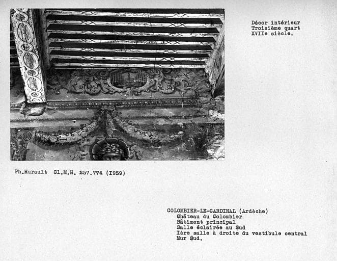 POP | Plateforme ouverte du patrimoineDécor intérieur de la première salle sur parc au rez-de-chaussée, frise au-dessus de la deuxième vertu à partir de l'est : tempérance, mur sud à droite du vestibule