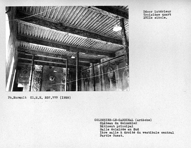 POP | Plateforme ouverte du patrimoineDécor intérieur de la première salle sur parc du rez-de-chaussée, vue d'ensemble nord-ouest du plafond à droite du vestibule