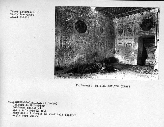 POP | Plateforme ouverte du patrimoineVue d'ensemble nord-ouest des peintures décoratives et du plafond, deuxième salle sur parc au rez-de-chaussée, à droite du vestibule