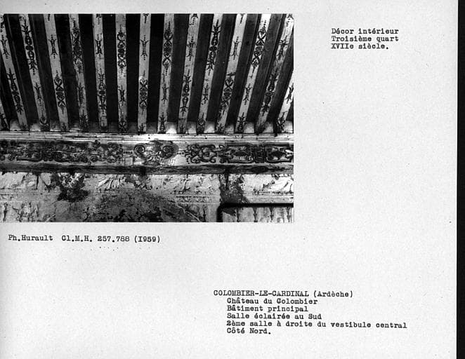 POP | Plateforme ouverte du patrimoineDécor intérieur de la deuxième salle sur parc au rez-de-chaussée, à droite du vestibule, mur nord, frise et plafond de la partie supérieure centrale