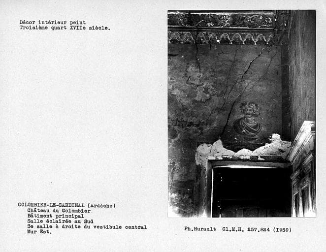 POP | Plateforme ouverte du patrimoineDécor intérieur de la troisième salle sur parc au rez-de-chaussée, à droite du vestibule, partie droite du mur est : verdure et buste figurant l'automne
