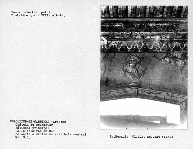 POP | Plateforme ouverte du patrimoineDécor intérieur de la troisième salle sur parc au rez-de-chaussée, à droite du vestibule, mur sud : buste au-dessus de la fenêtre figurant l'été