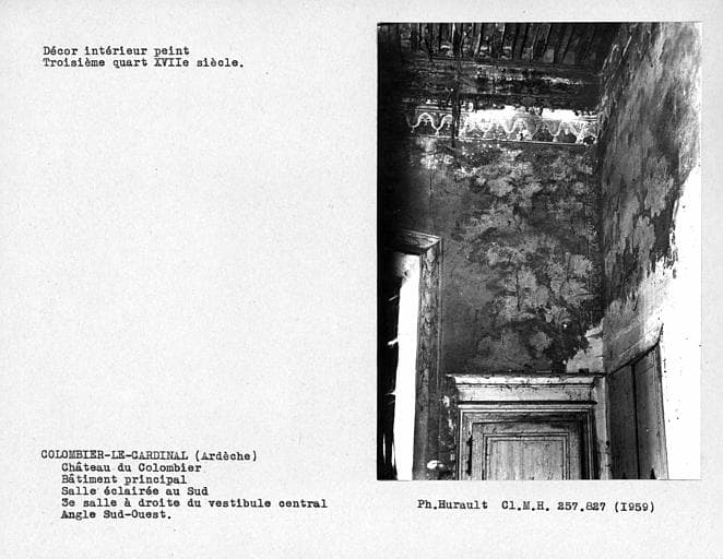 POP | Plateforme ouverte du patrimoineDécor intérieur de la troisième salle sur parc au rez-de-chaussée, à droite du vestibule, côté droit du mur sud : verdure simulée