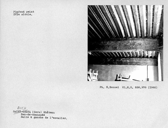 POP | Plateforme ouverte du patrimoinePlafond peint de la pièce centrale du rez-de-chaussée, à gauche de l'escalier