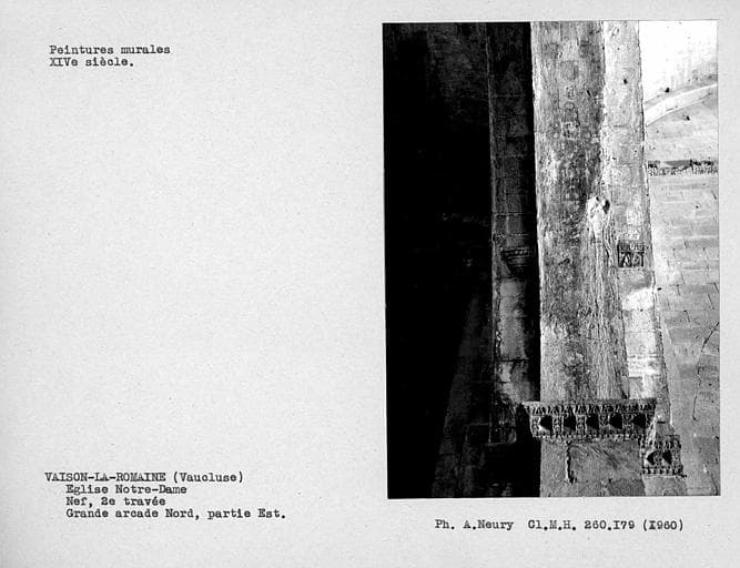 POP | Plateforme ouverte du patrimoineRestes de peintures murales sur la partie est de l'intrados de la grande arcade de la deuxième travée du côté nord de la nef