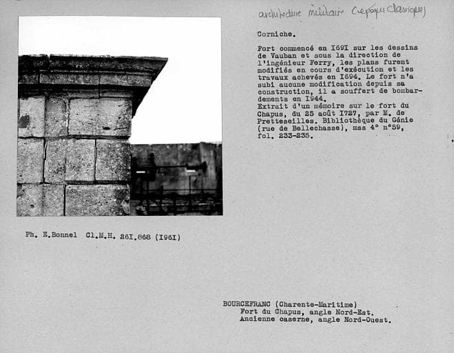 POP | Plateforme ouverte du patrimoineCorniche de l'angle nord-est de l'ancienne caserne à l'intérieur du fort