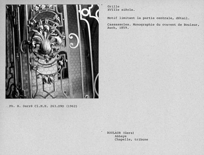 POP | Plateforme ouverte du patrimoineGrille de la tribune de la chapelle,détail du motif limitant à droite la partie centrale