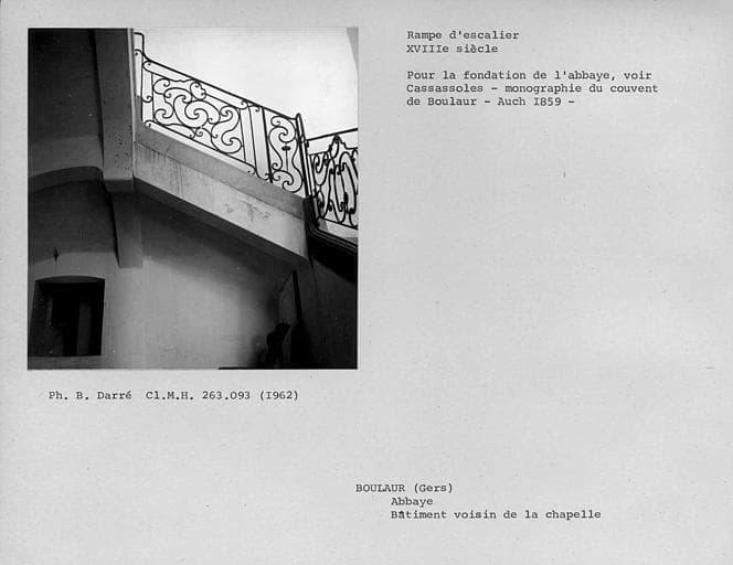 POP | Plateforme ouverte du patrimoineRampe en fer forgé de la volée médiane de l'escalier au premier étage du bâtiment voisin de la chapelle