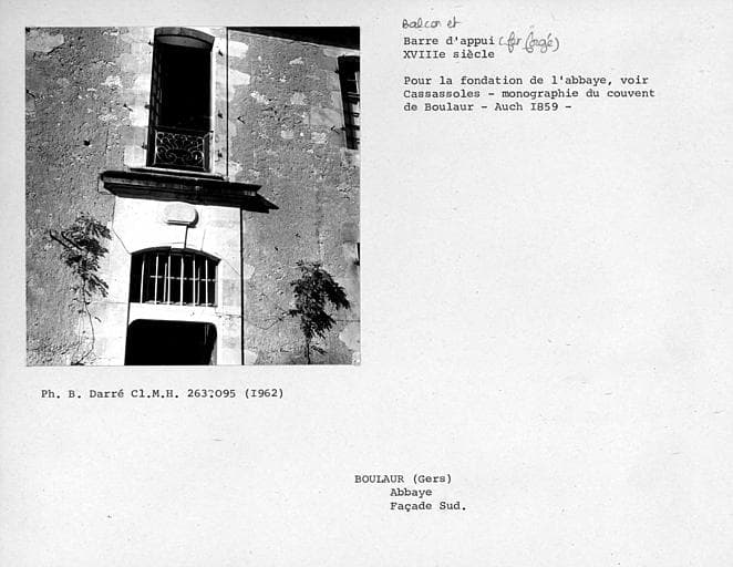 POP | Plateforme ouverte du patrimoineBarre d'appui en fer forgé de la fenêtre de la façade sud surmontant la porte d'entrée
