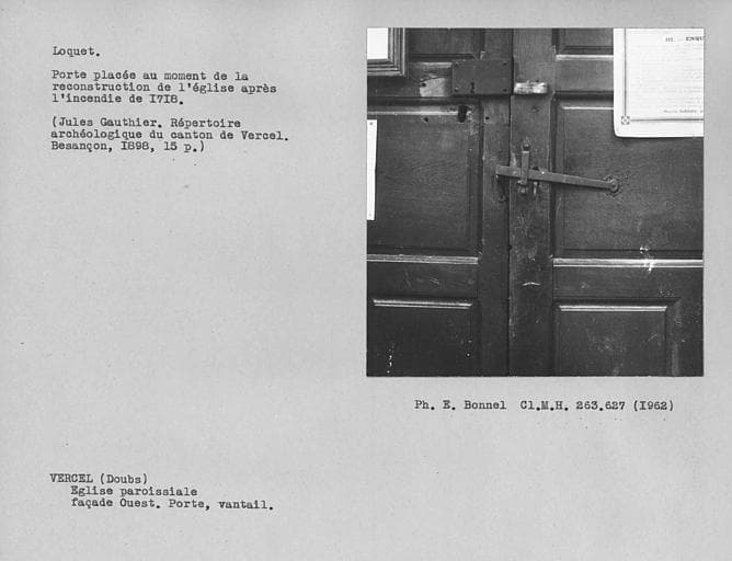 Loquet à l'intérieur des vantaux de porte de la façade ouest