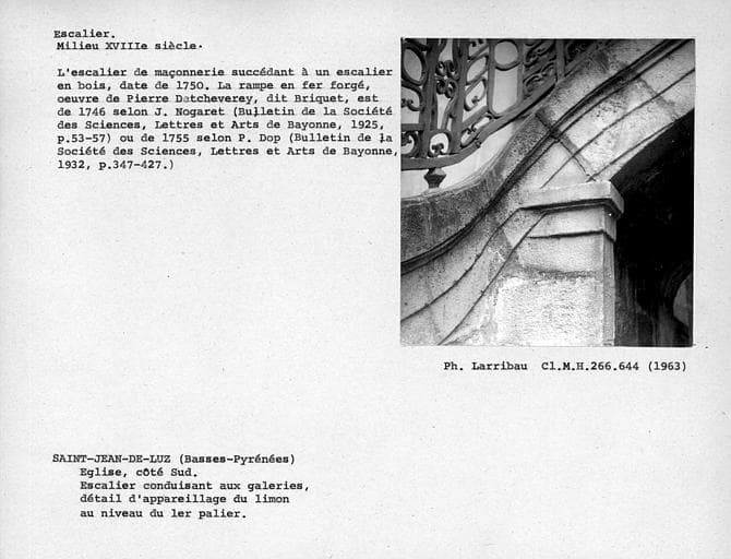 Escalier extérieur d'accès aux tribunes, appareillage du limon au niveau du premier palier