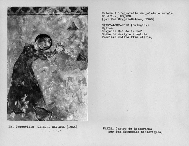 Relevé de peinture murale de la chapelle sud, scène de martyre : saint expirant