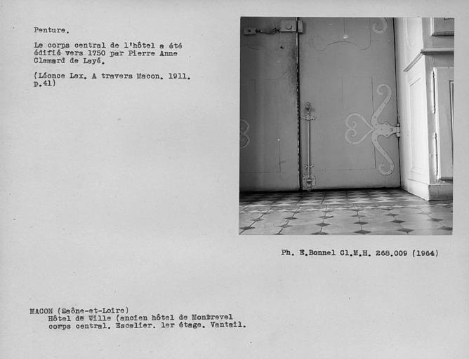 Premier étage du grand escalier, penture côté salle de la porte sur palier