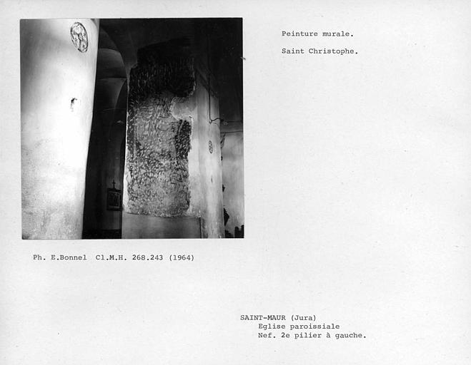 Intérieur, peinture murale au premier pilier à gauche : Saint-Christophe