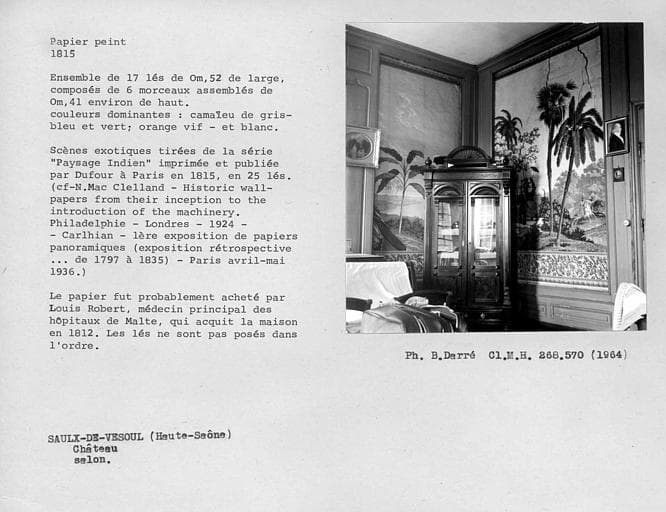 POP | Plateforme ouverte du patrimoineSalon au premier étage, papier peint de l'ensemble de l'angle sud-ouest, scènes exotiques tirées de la série 'paysage indien'