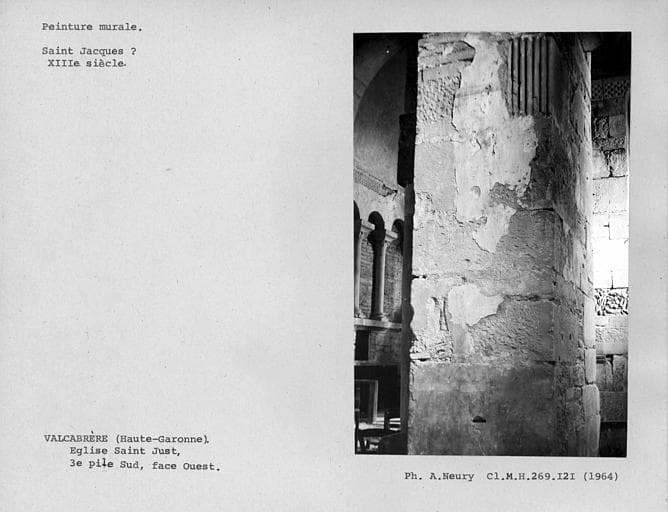 POP | Plateforme ouverte du patrimoineDeuxième pile sud de la nef, vestige de peinture murale sur la face ouest : un saint
