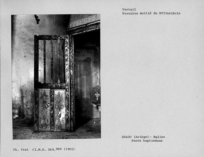 POP | Plateforme ouverte du patrimoineClôture des fonts baptismaux, angle nord-ouest de la nef. Peintures sur bois de la face intérieure du vantail