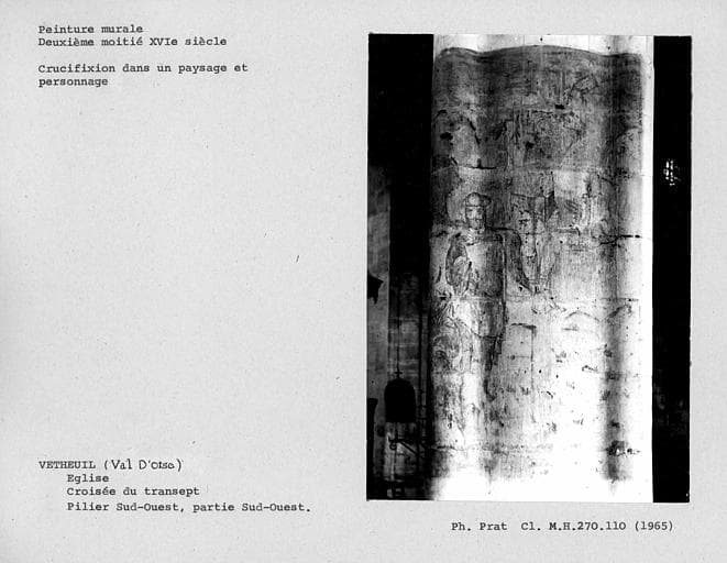 Pile sud-ouest de la croisée du transept, peintures murales du côté sud-ouest : vestiges d'un personnage, d'un Christ, sur fond de paysage