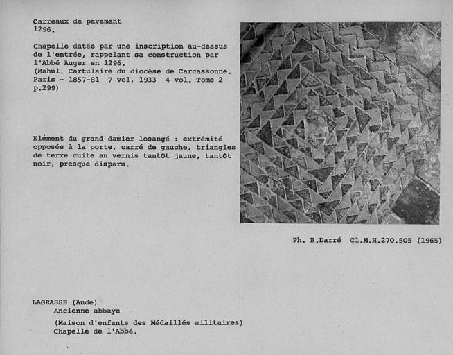 POP | Plateforme ouverte du patrimoineCarrelage de la chapelle de l'abbé au premier étage, extrémité des grands damiers opposés à la porte, losange gauche