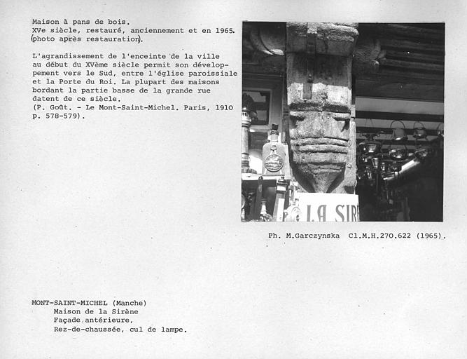 Détail d'un cul-de-lampe au rez-de-chaussée de la façade antérieure ; construction à pans de bois
