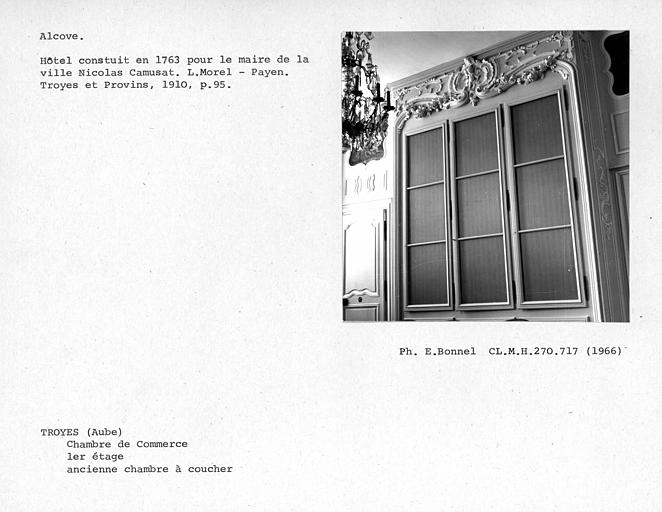 Décor intérieur de l'ancienne chambre à coucher, premier étage, boiserie de l'alcôve face à la cheminée