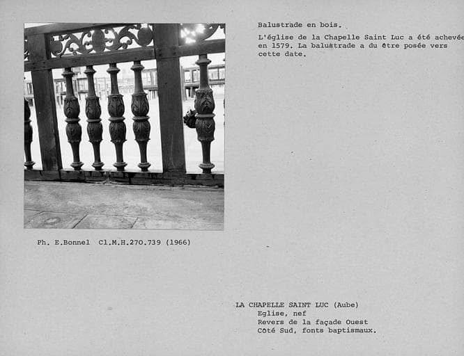 POP | Plateforme ouverte du patrimoineBalustrades de bois autour des fonts baptismaux de la nef, revers de la façade ouest, côté sud