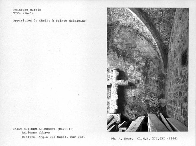 POP | Plateforme ouverte du patrimoinePeintures murales du mur nord de la travée nord-ouest du cloître : Apparition du Christ à Sainte-Madeleine ?, ensemble