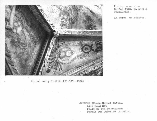 POP | Plateforme ouverte du patrimoinePeintures murales de la partie sud-ouest de la voûte de la salle peinte au rez-de-chaussée de l'aile nord-est : Atlante, Force