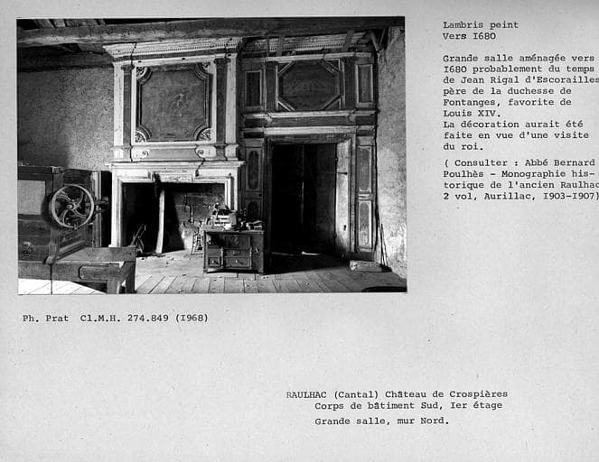 POP | Plateforme ouverte du patrimoineLambris peint et cheminée sur le mur Nord de la grande salle au premier étage du corps de bâtiment Sud