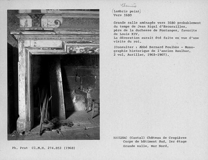 POP | Plateforme ouverte du patrimoineCheminée du mur nord de la grande salle au premier étage de l'aile sud. Piédroit gauche