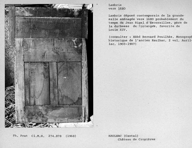 POP | Plateforme ouverte du patrimoineLambris déposé vu sur son revers et qui semble assorti à la lame de la cheminée de la grande salle au premier étage de l'aile sud